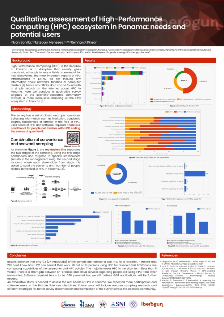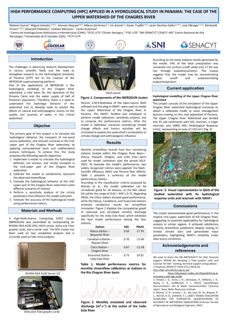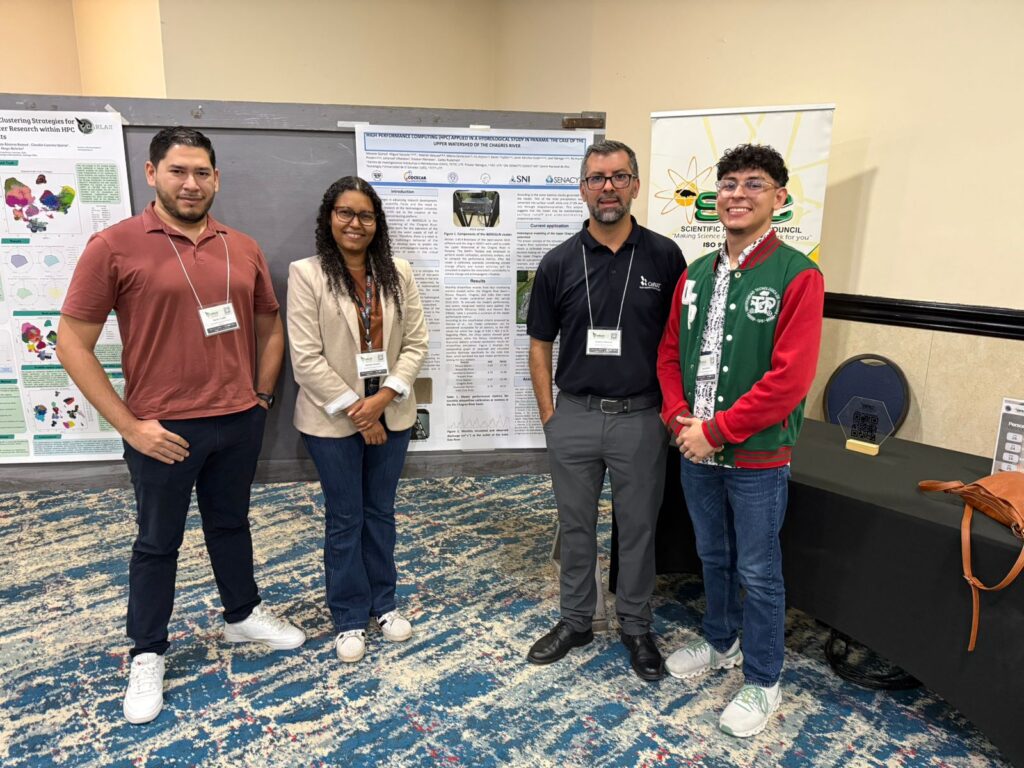 Escuela Development Operations (DevOps) y presentación de dos pósters, titulados “HIGH PERFORMANCE COMPUTING (HPC) APPLIED IN A HYDROLOGICAL STUDY IN PANAMA: THE CASE OF THE UPPER WATERSHED OF THE CHAGRES RIVER” y “Qualitative assessment of High-Performance Computing (HPC) in Panama: stakeholder’s needs and potential users.”