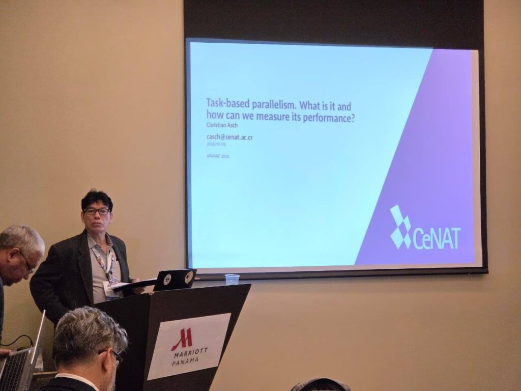 En el marco del Lanzamiento del Consorcio Centroamericano de Computación de Alto Rendimiento (CoCeCAR) integrado por instituciones de Costa Rica, El Salvador y Panamá y con el objetivo de buscar establecer en la región, una red de unidades de investigación en el desarrollo y aplicación de la computación de alto rendimiento (HPC) en diferentes áreas, la Dra. Milena Linette Zambrano Hernández, investigadora del Centro de Investigaciones Hidráulicas e Hidrotecnicas y el Magister Xavier Trujillo, académico de la Universidad Tecnológica de Panamá y administrador del Laboratorio de Supercomputación Iberogun, participaron en la Escuela de Programación Paralela y Arquitectura para HPC, en el Centro Nacional de Alta Tecnología(CeNAT) ubicado en San José , Costa Rica, del 29 de enero al 2 de febrero del presente año. El Encuentro Centroamericano sobre el Estudio Computacional de Cuencas Hidrográficas 2024. En el acto se contó con la participación del Doctor José Fábrega – Director del (CIHH), quien expuso las capacidades con que cuenta la UTP en especial la Facultad de Ingeniería Civil y el CIHH. También, durante el taller el Doctor Miguel Salceda – Investigador del CIHH, presentó algunos posibles proyectos de interés a realizarse en el marco del Consorcio. En el marco de la Escuela de HPC 2024, la delegación panameña presentó a los asistentes de la actividad temas, tales como: Video sobre el CIHH y Actividades para la Administración y Accesibilidad a la Computación de Alto Rendimiento presentados por la Ingeniera Iris Arjona de Candanedo, ¿Por qué un Clúster HPC en la UTP?- por el Doctor Javier Sánchez Galán, “Arquitectura del Laboratorio de Supercomputación por el Magister Xavier Trujillo y “Centro de Computación de Alto Rendimiento IBEROGUN Gestión y Aplicación GPU NVIDIA DGX-A100”, por la Doctora Milena Zambrano.